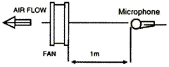 HXHT风扇的噪音是在背景噪音低于15dBA无回响室中所测量。待测风扇在自由空气中运转,距入风口一米处置一噪音计。