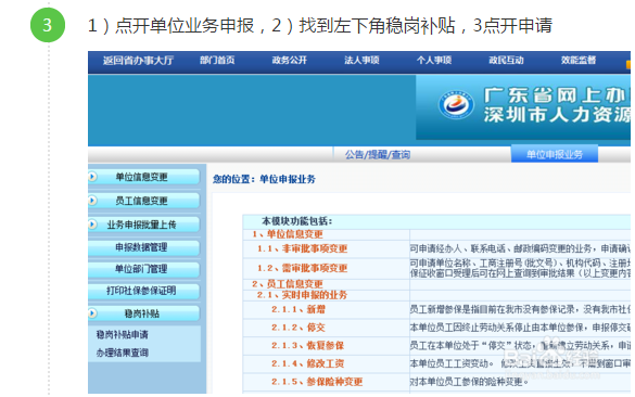 符合条件的企业登录市社保机构门户网站(www.szsi.gov.cn)申报系统,提交稳岗补贴申报。每年申报截止时间为6月30日,2015年符合条件企业的申报截止时间为2016年6月30日,拨付时间为2016年10月31日前,将一次性拨付至企业的社保缴费账户。