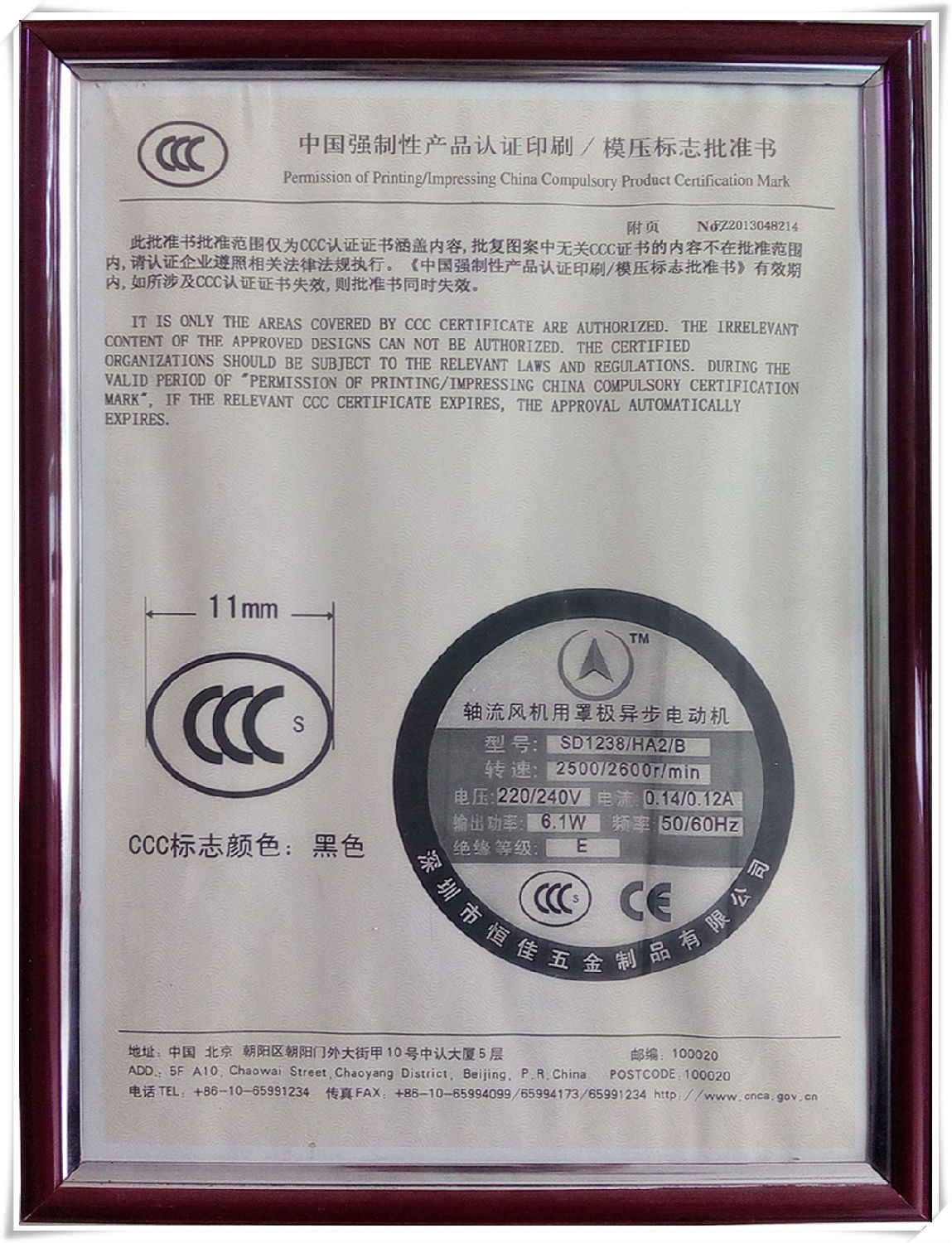 中国强制性产品认证印刷批准书